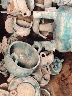 The sculptures were depictions of Chinese Cultural characters. I have never seen a clay model at large as those under construction. They were about 5 meters high. It was really something to walk amongst the scaffolding built up around these clay objects. I felt that I was in the land of Gods. I questioned what they weighed, but it was lost amongst the excited chatter of the group. I also wondered how they were going to move the pieces. I have never seen clay work on this scale. He had a team of artists working with him. The studio was a beehive of activity. Ji Ping explained his process and showed us his model on how the elements of the sculpture would look when finished.